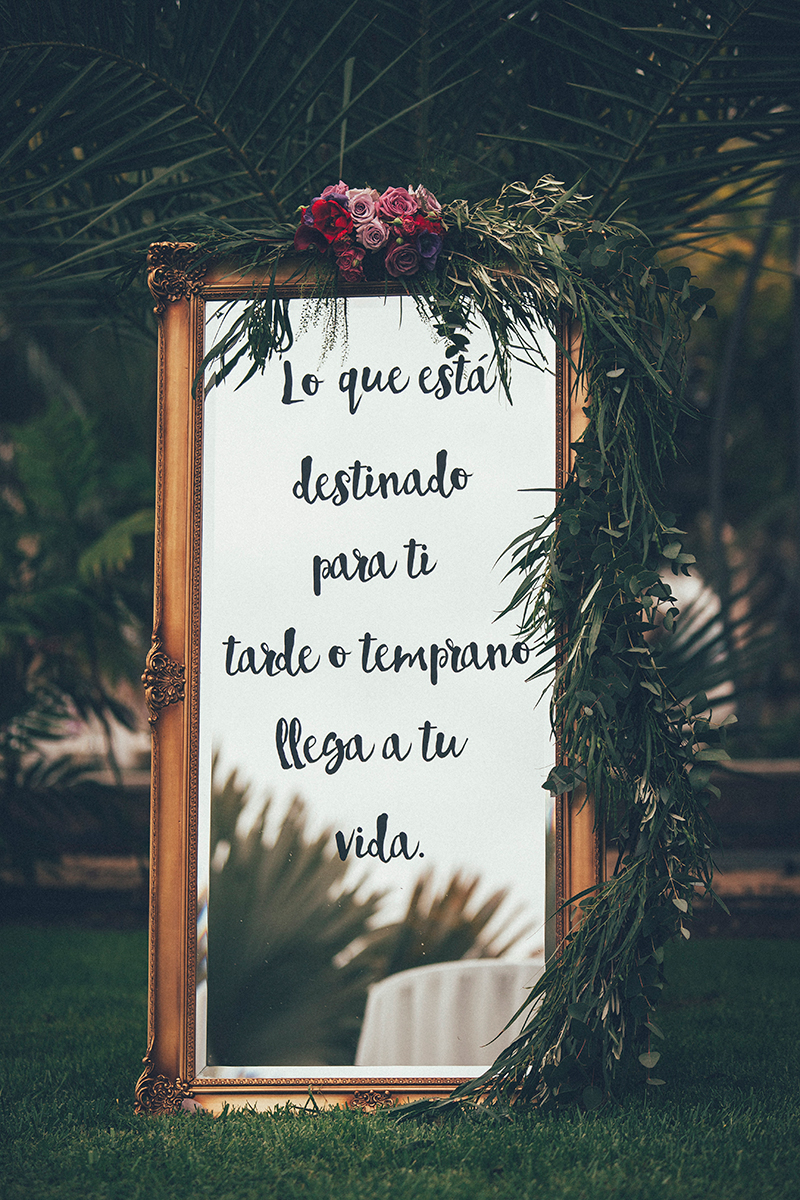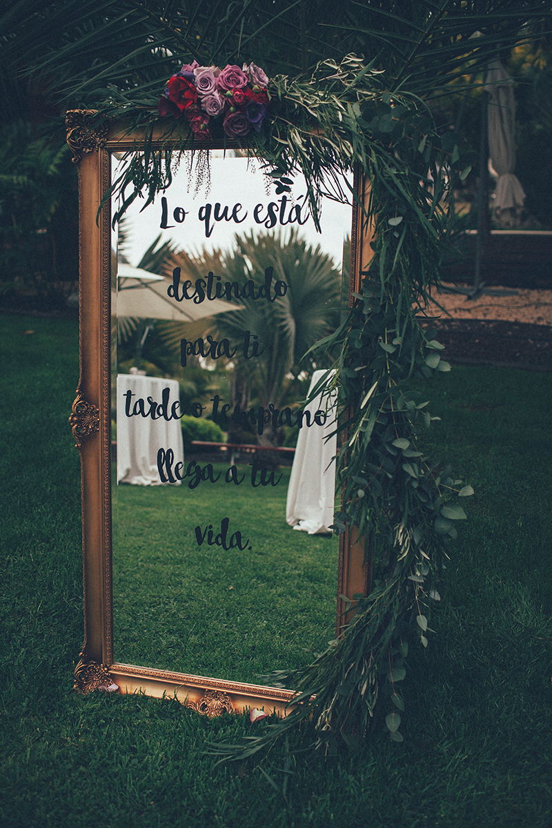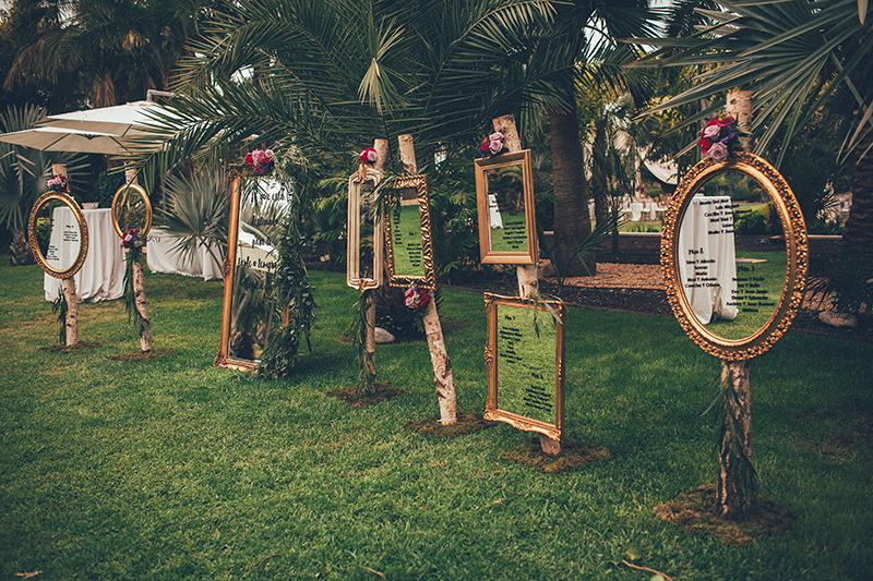 As we like to personalize our wedding, today we´ll show one seating made with mirrors and mauve colours. All guests are glad when they arrive at the venue which starts the cocktail and see their names reflected in some old mirrors. Special details make a great difference