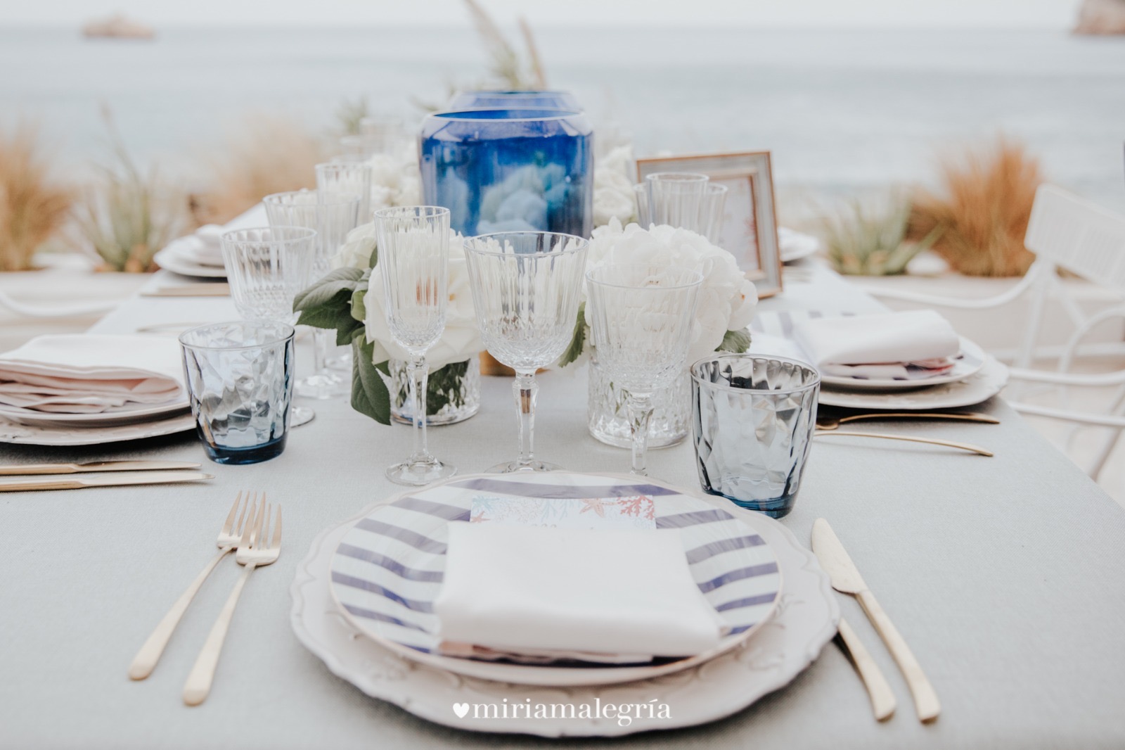 Today we are going to talk about a beautiful venue that we loved , its named Cala Clemence, and it is base on Javea , at Cala del Portixot Its a gorgeous área where you are able to see in the back a liitle island, on the other side a marvellous mountain with a lot of wilderness and in the beach área there are several White little houses with their blue doors with the walls all White . from the first momento we had a great connection with the owner of the vennue , marta, due to this and that the venue was gorgeus we decided to start working together strait away.