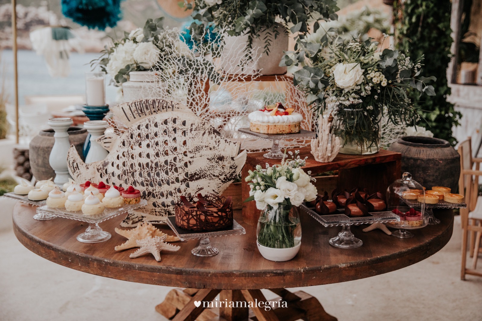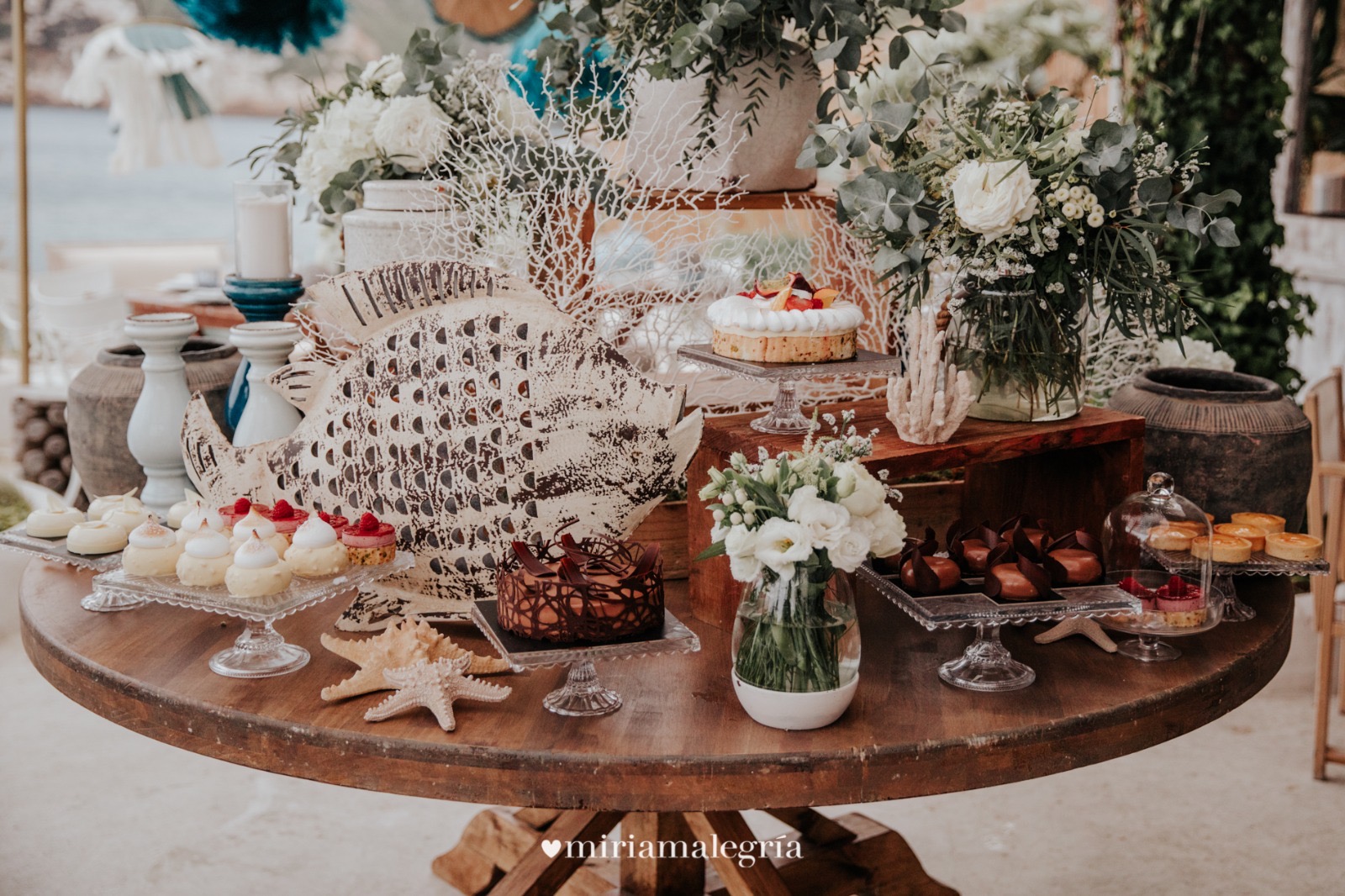 We show you a dessert bufet with beach motifs, you can put in your wedding