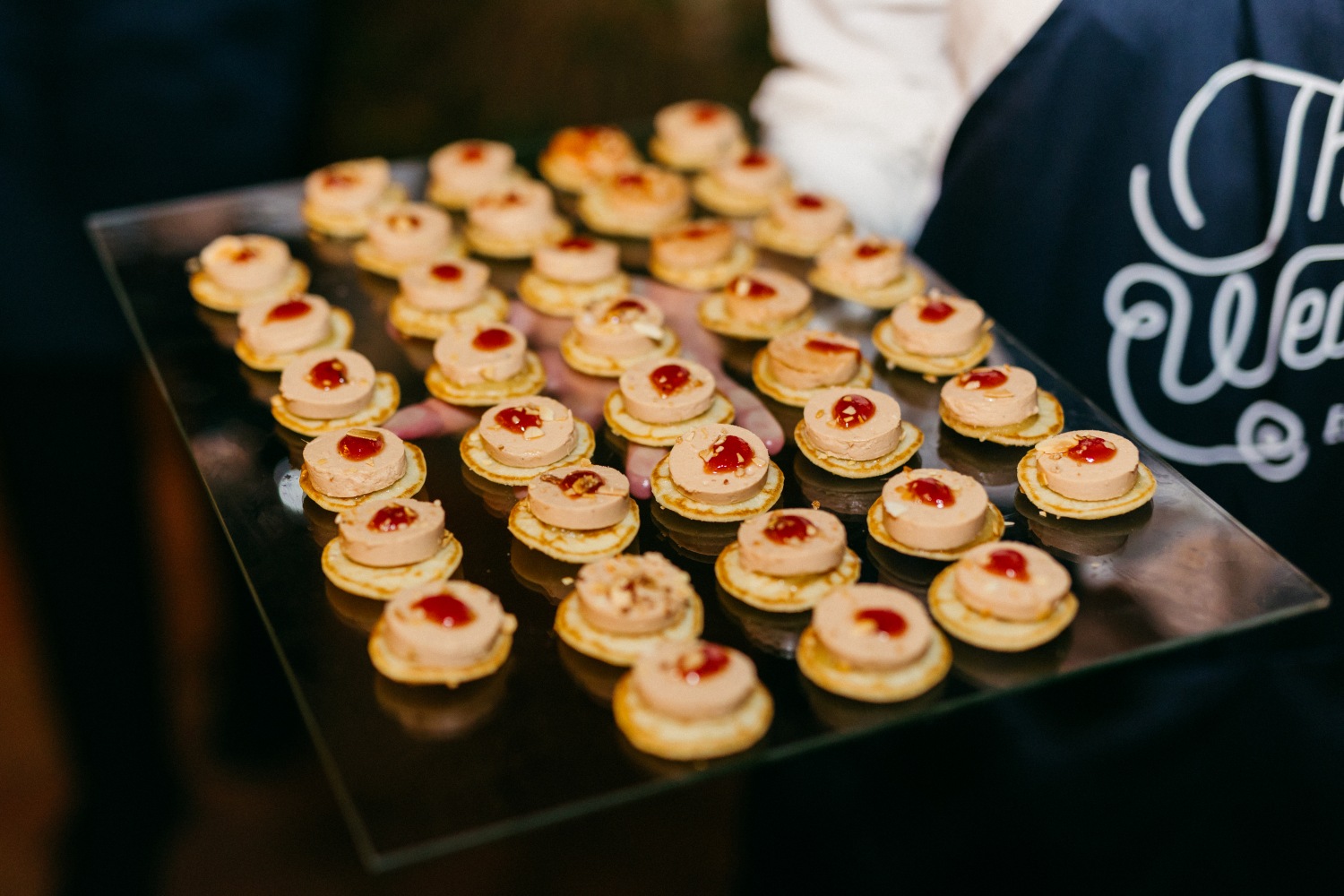La pareja eligió un menú abundante, tanto en el cóctel como en mesa, reforzando la idea de una celebración generosa y cercana.