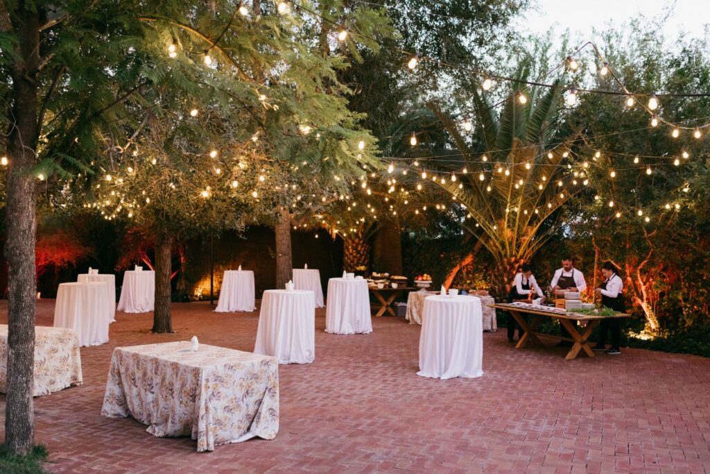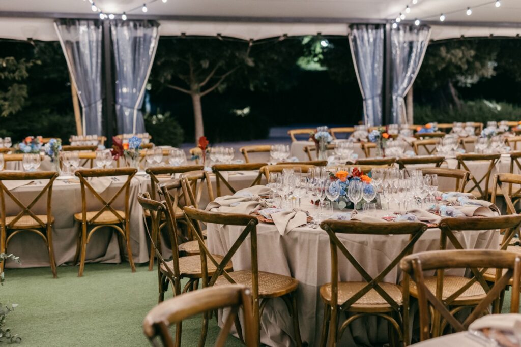 Fue una boda de noche diseñada por The Wedery, donde se ofrecieron catering, organización y decoración para asegurar una experiencia completa. La iluminación tuvo un papel esencial, acompañada por una propuesta floral creada por Bésame Mucho, que aportó textura y naturalidad.