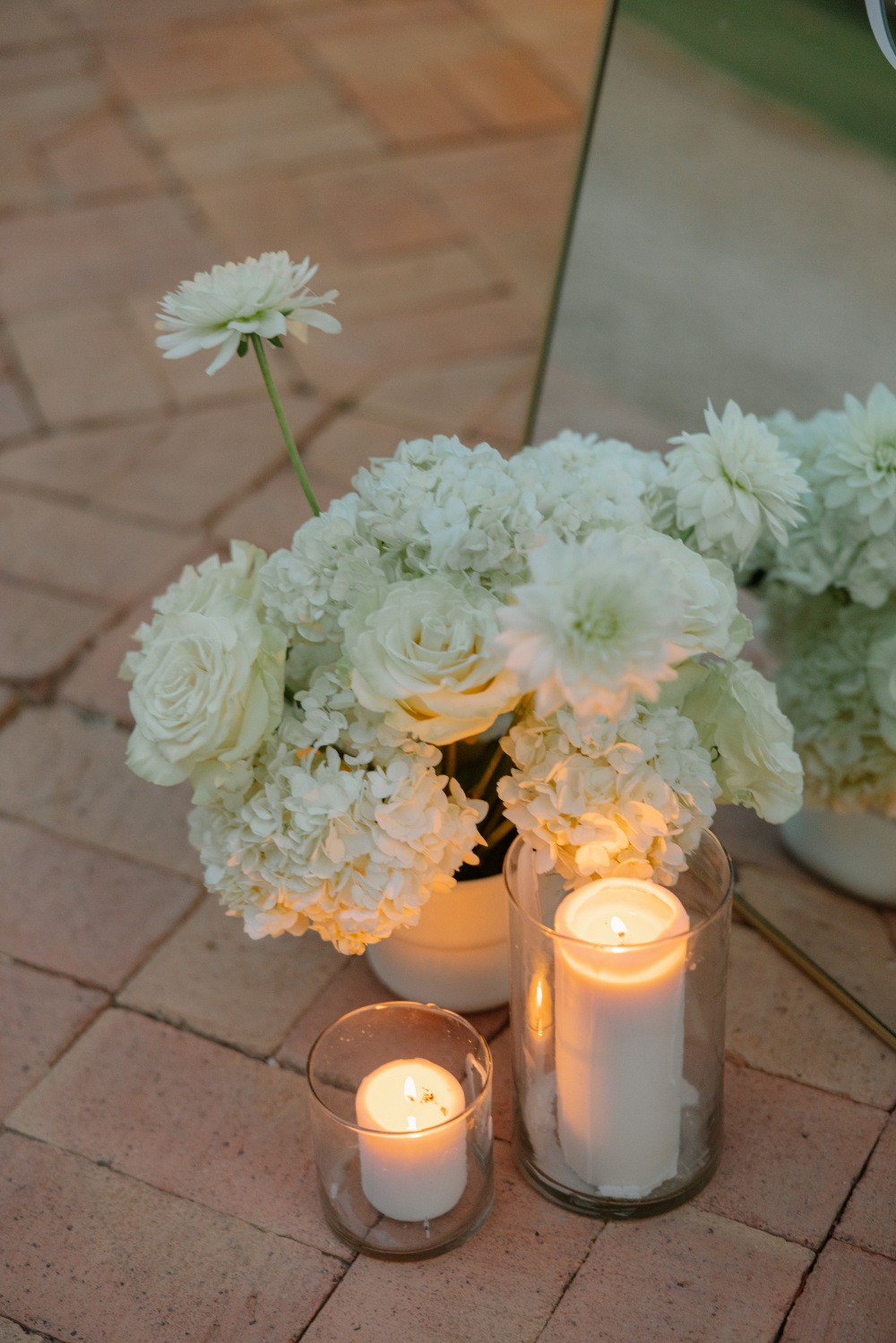 Como responsables del Catering y la coordinación del evento, en The Wedery nos aseguramos de que la experiencia fuera tan impecable como la estética. La iluminación fue clave: cientos de velas bañaron el espacio con una luz cálida que se reflejaba en la cristalería y en la exquisita selección textil de Mantelería y Menaje, creando un juego visual mágico capturado a la perfección por la lente de Doble L.