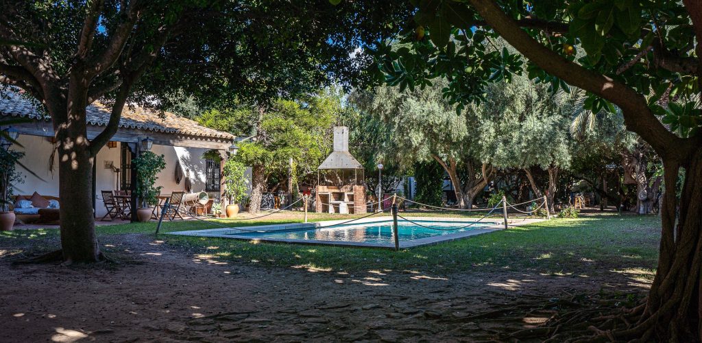 Cada fase del evento puede transcurrir en un ambiente diferente, a gusto de los novios. Para ceremonias civiles, el cortijo ofrece una zona con árboles y césped cuidado, y otra sobre suelo de albero rodeada de árboles. Tras la ceremonia, el cóctel se realiza en la zona del porche frente a la casa, presidido por una fabulosa piscina rodeada de jardín. El banquete se lleva a cabo en un entorno de total exclusividad.