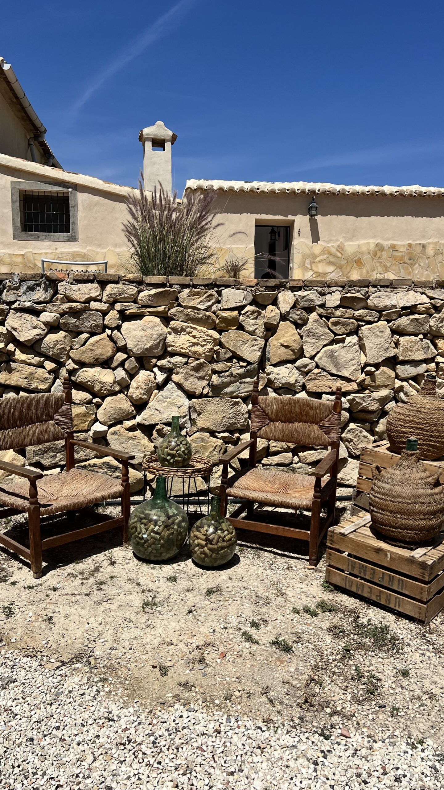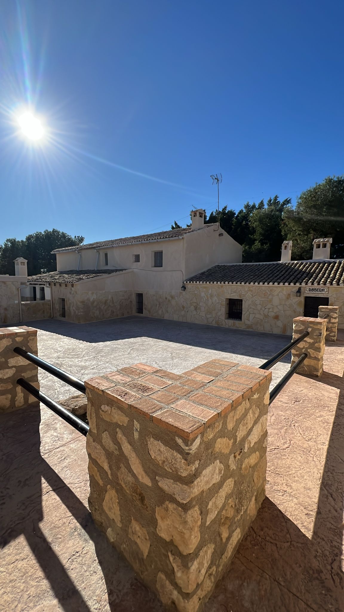 Rodeada de campos de granados y pinadas, con un horizonte abierto donde se ve el mar desde la pinada principal.