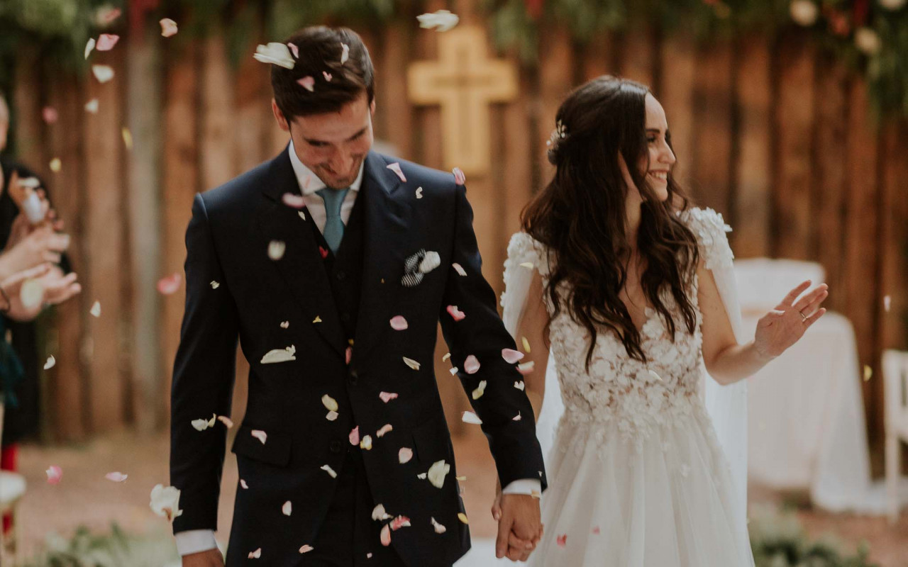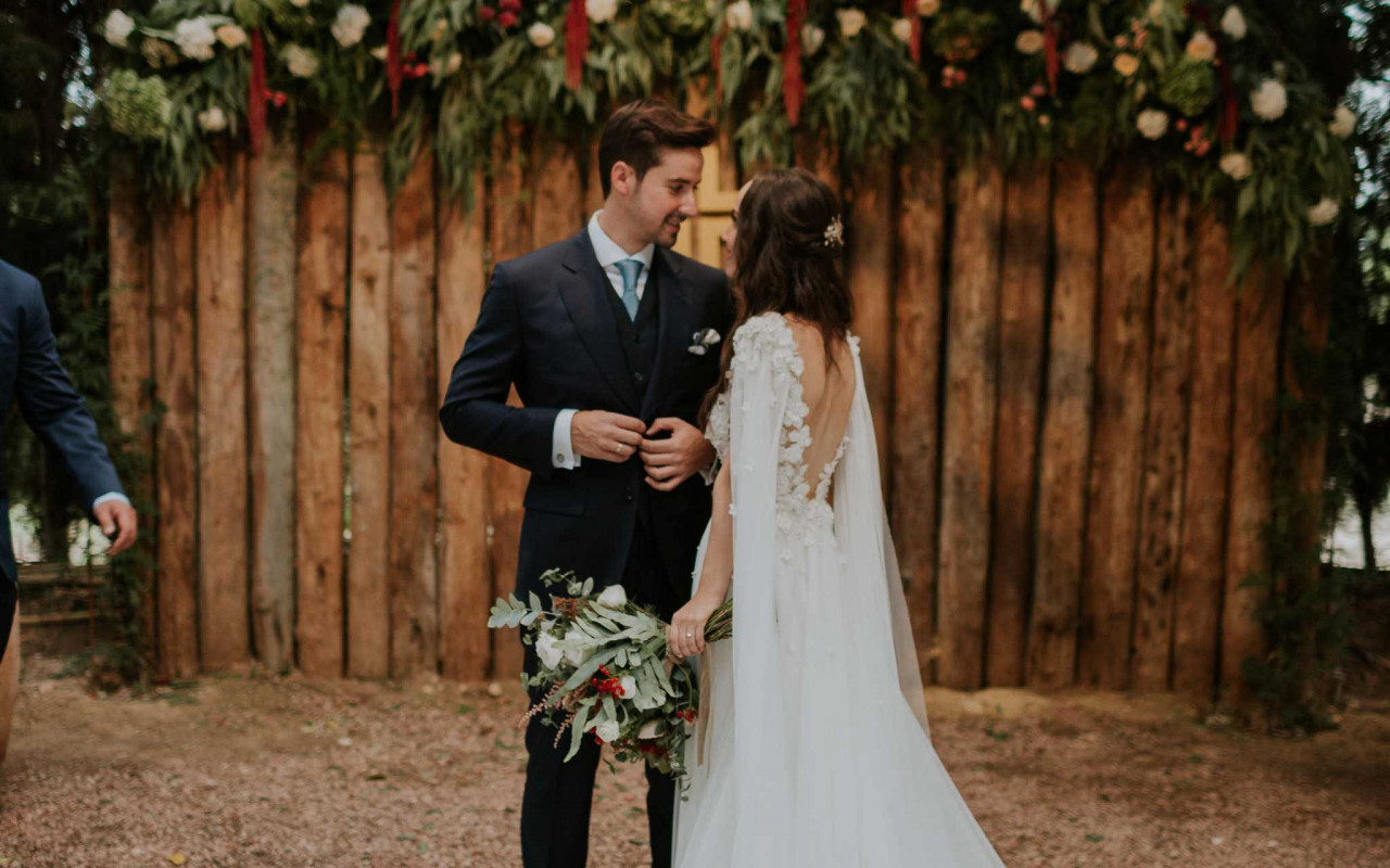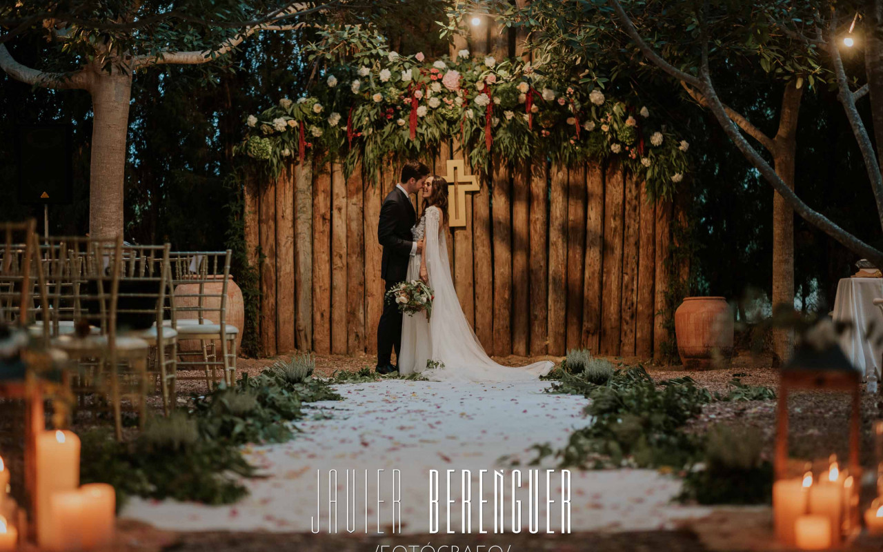 This wedding was an emotional, warm and powerful one. Tears of joy, words that will be remembered for a lifetime and uncontrollable fits of laughter were shared amongst dear friends and family. Meaningful vows were read on a autumn ’s evening, in a wild overgrown meadow in the countryside of Alicante, Spain. The bride, beautiful and goddess like wore a floaty bohemian gown with to-die-for flared sleeves, designed and made by Ruben Hernandez.