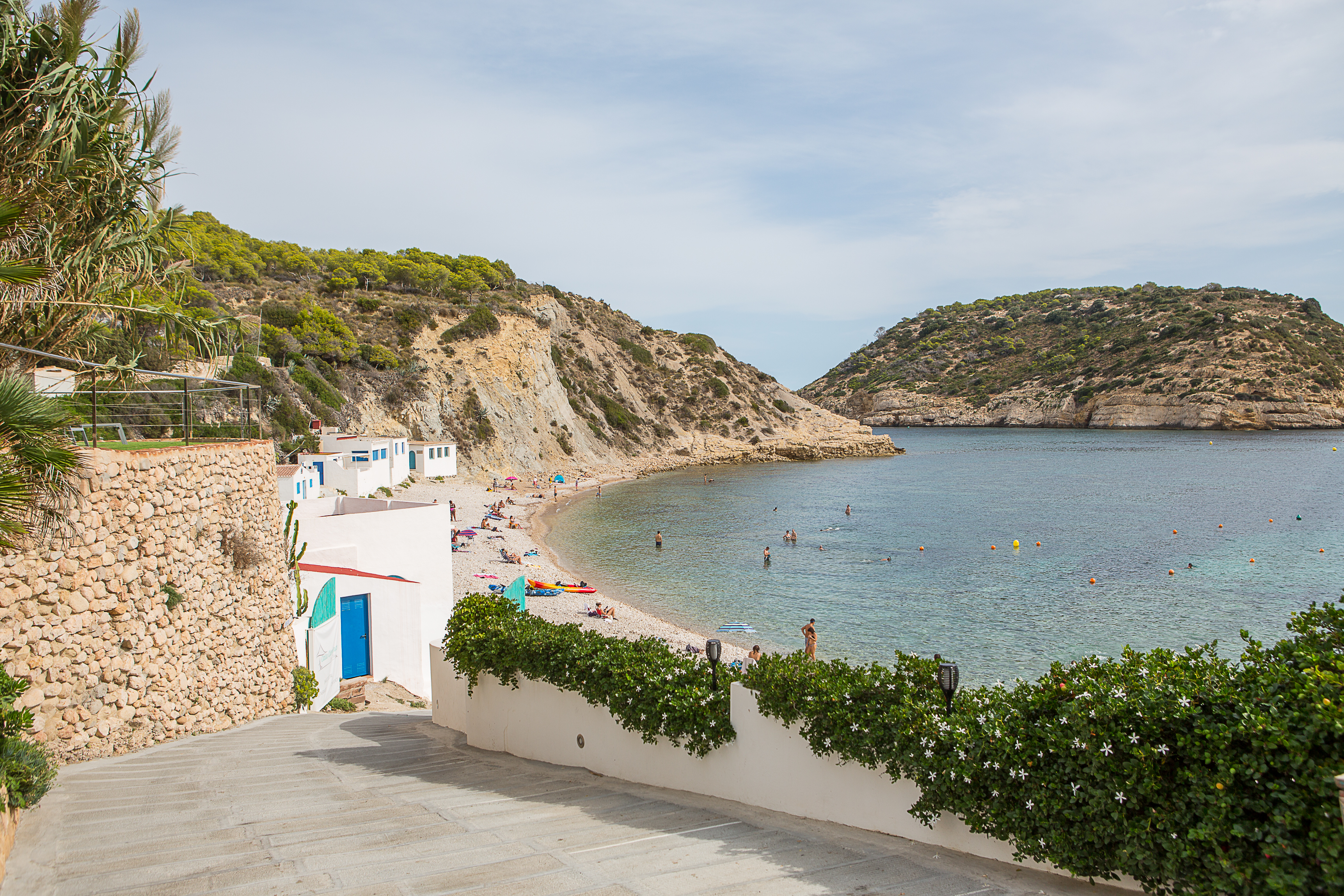 This wedding venue is located in Jávea, between Alicante and Valencia (Costa Blanca). It’s also in front of Ibiza, the pearl of the Mediterranean Sea. Cala Clemence stands out because of its bohemian style to celebrate an original wedding with a pure and natural feeling. For example, the decoration details like the chill-out table, the lamps hung like a hippie chic party on the beach. In this wedding venue in Jávea, the area where the tables are set is surrounded by the sea, the blue sky, and white little stones. In the background you can see Portixol Island. When guests arrive at this gorgeous venue and they can see the sea views - it’s the best welcome gift that you can give them: to spend a perfect afternoon in full nature. The couple will be able to arrange the civil ceremony on the beach, next to the Mediterranean, and all the friends and guests will enjoy a romantic and nostalgic moment of “Yes, I do” with a lot of love. The Mediterranean weather allows us to enjoy the outdoors in this wedding venue in Javea. Make your dream come true!